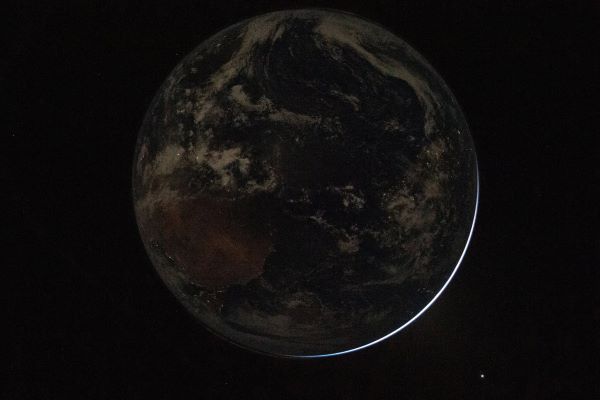 La NASA añadió dos imágenes más de la Tierra tomadas por la tripulación el viernes por la tarde. Una mostraba nuestro planeta con un lado iluminado por el Sol y el otro ensombrecido por la oscuridad de la noche. En una segunda imagen, nuestro mundo oscuro, con una pequeña creciente de luz que ilumina la parte inferior.