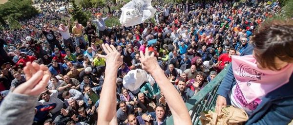 Se lanzan miles de bolsas que contienen el famoso pan y el quesillo. La gente pone paraguas del revés, bolsas de tela reforzadas y saltos dignos de la NBA.