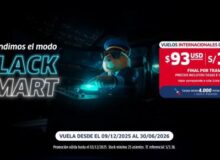 La aerolínea ultra low cost ofrece descuentos de hasta 44% en rutas nacionales y promociones especiales en internacionales. Entre las principales ofertas destacan Cajamarca–Lima desde USD 24 (S/ 80) y Lima–Medellín desde USD 93 (S/ 315), válidos para viajar entre el 9 de diciembre de 2025 y el 30 de junio de 2026. LIMA/30/11/ 2025.- JetSMART puso en marcha su campaña Black SMART con promociones en vuelos nacionales e internacionales, pensadas para quienes desean planificar sus viajes con anticipación y aprovechar tarifas más accesibles bajo la propuesta de pagar solo por lo que usas, lo que permite ajustar el costo…